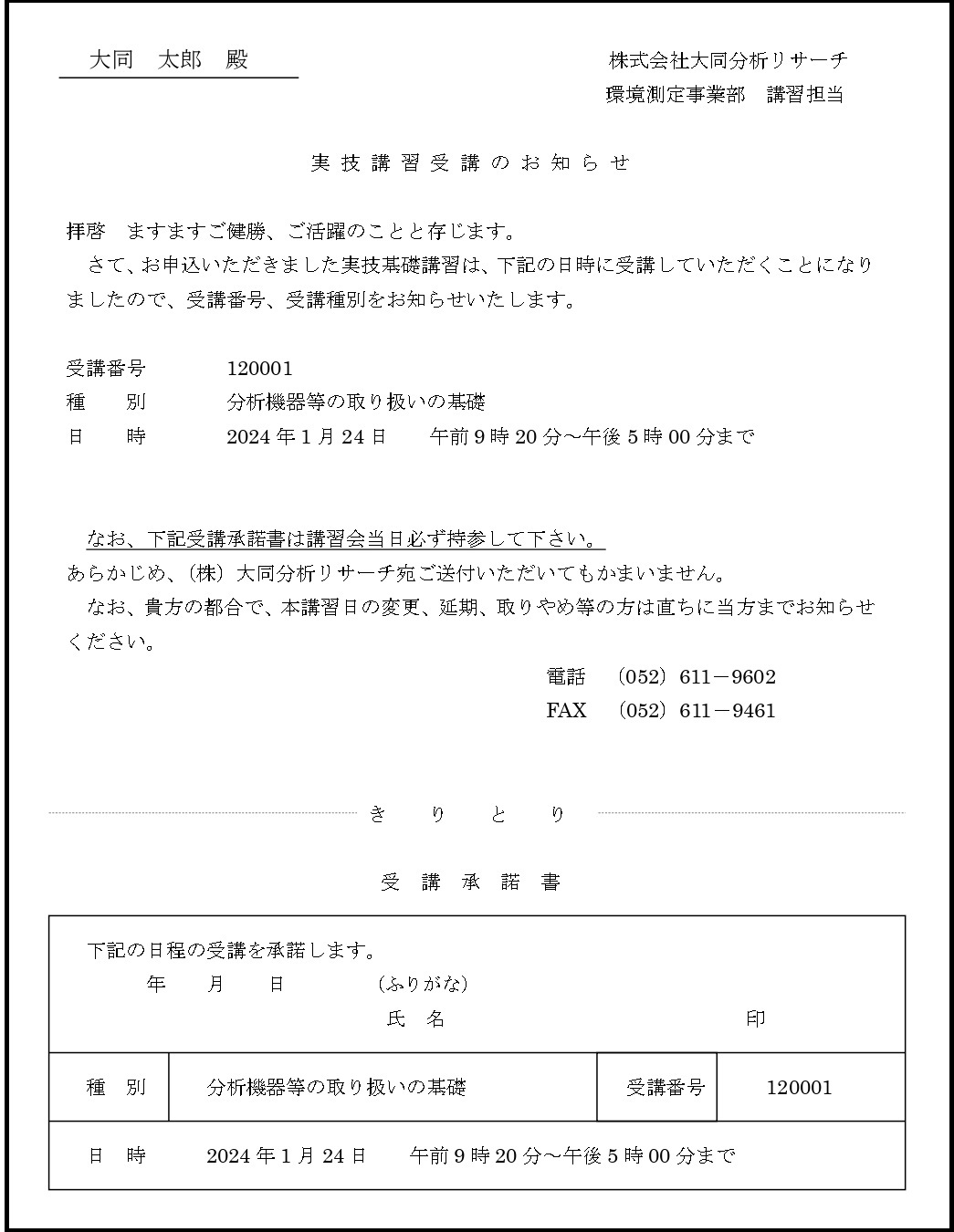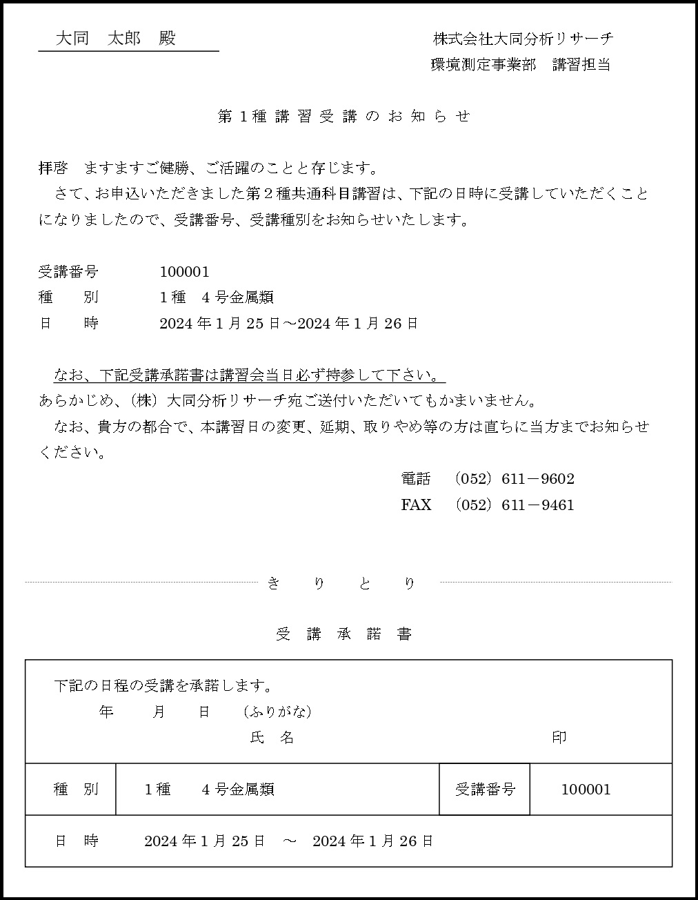 ② 受講承諾書(事前に記入し、受付に提出して下さい)