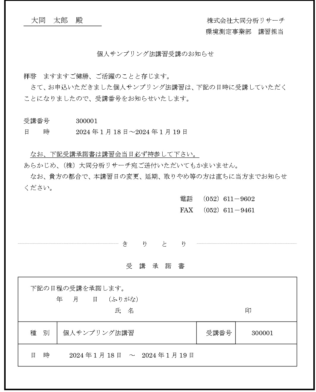 ② 受講承諾書(事前に記入し、受付に提出して下さい)